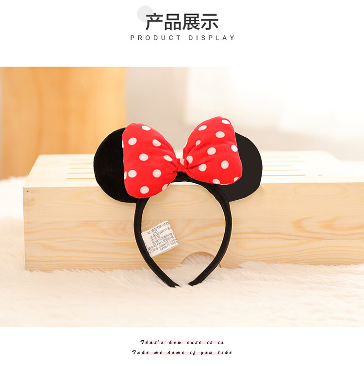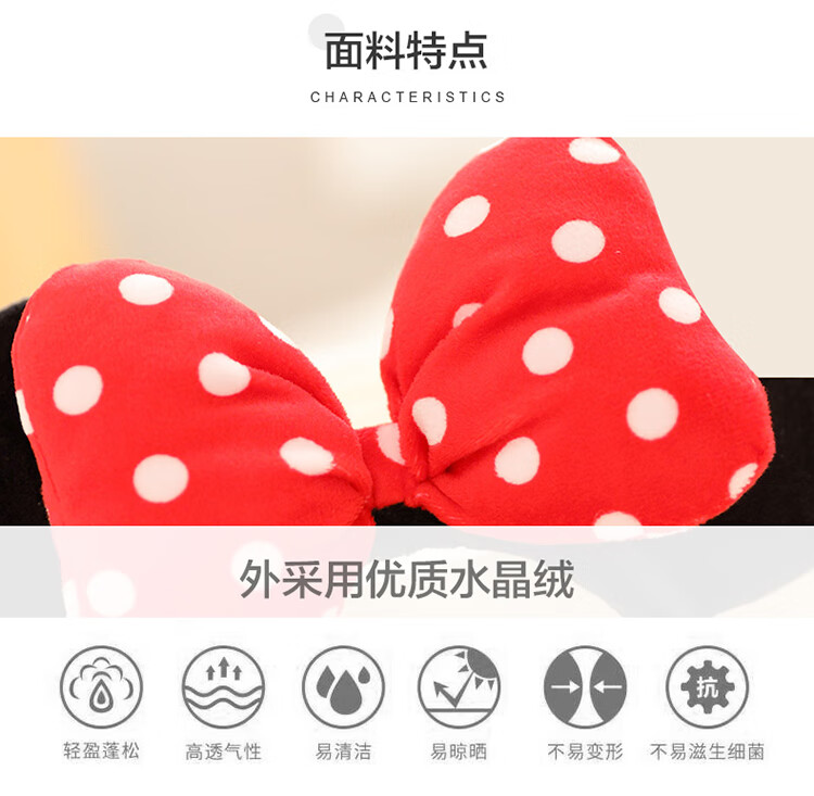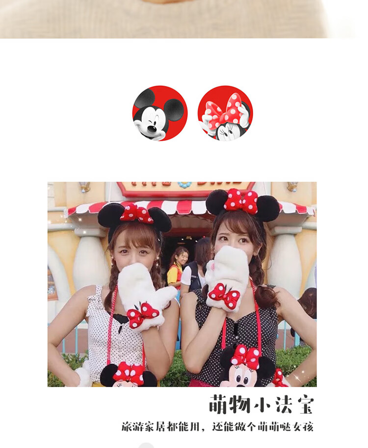 迪士尼(Disney)毛绒玩具发箍正版发饰卡通头饰米奇老鼠饰品男女孩演出道具送女友老婆女孩生日礼物女生闺蜜创意礼品米妮蝴蝶结头箍